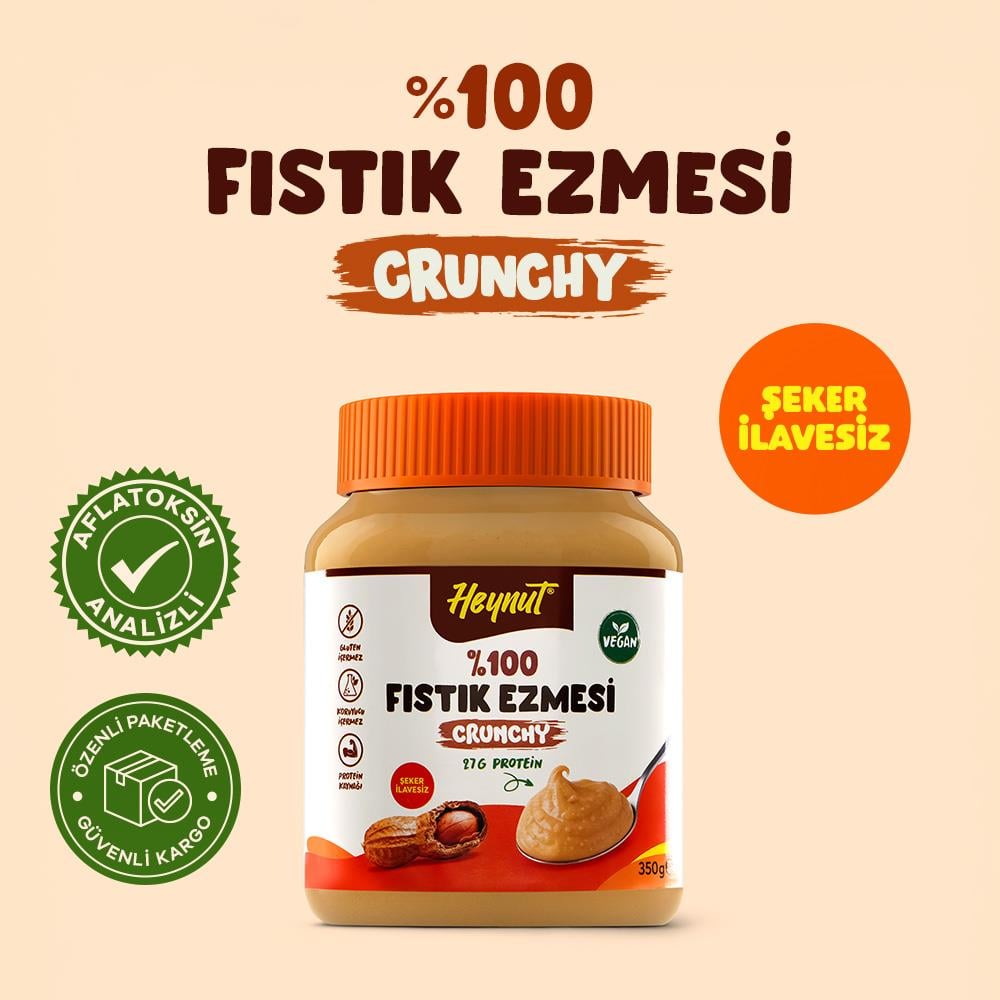 HeynuT Crunchy %100 Fıstık Ezmesi – İri Parçacıklı, Şeker İlavesiz ve Doğal Lezzet