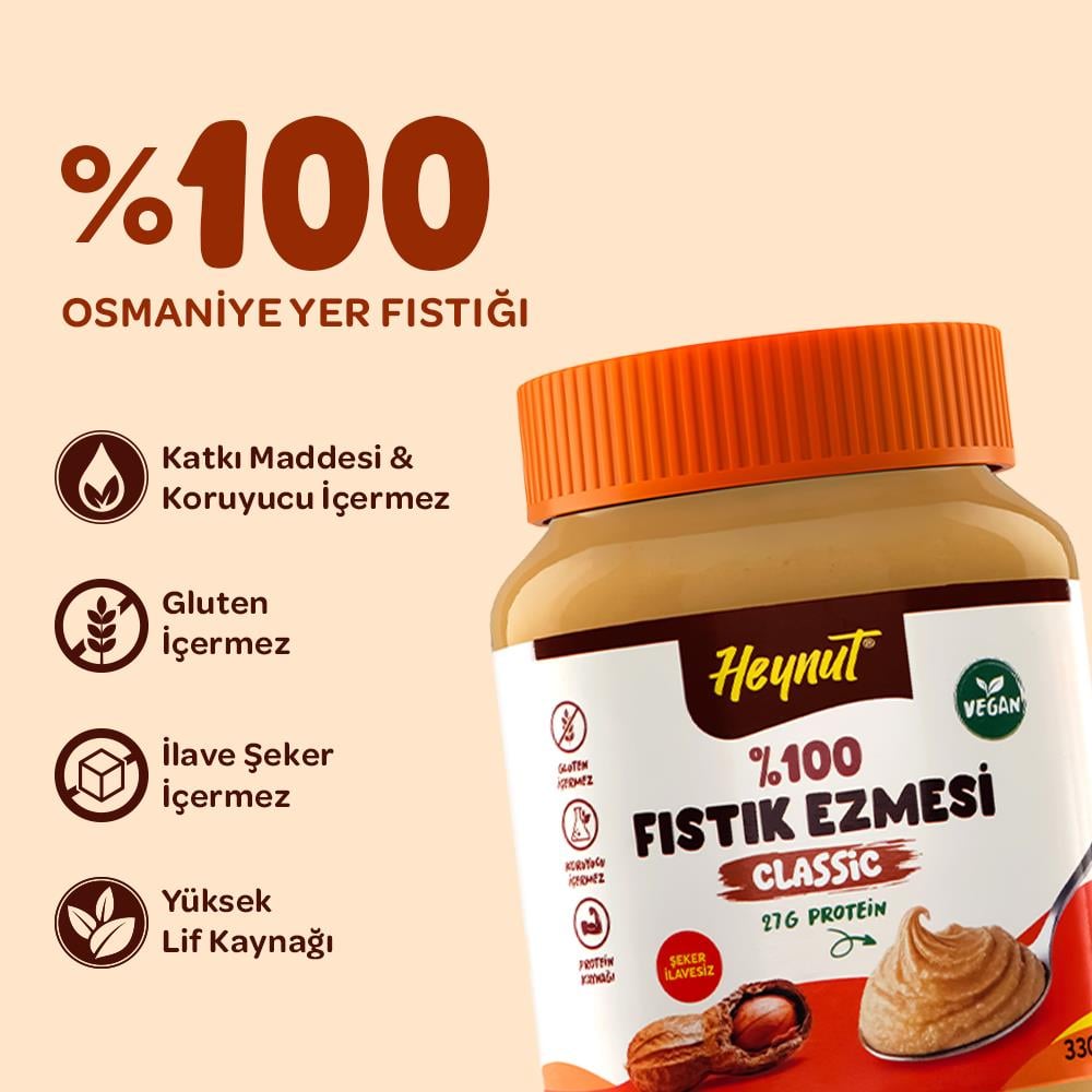 Gerçek fıstık lezzetini en saf haliyle deneyimlemeye hazır mısınız? Heynut Classic Fıstık Ezmesi, içerisine hiçbir katkı maddesi, koruyucu veya ilave şeker eklenmeden; sadece %100 yer fıstıklarının özenle seçilip kavrulmasıyla üretilmiştir.