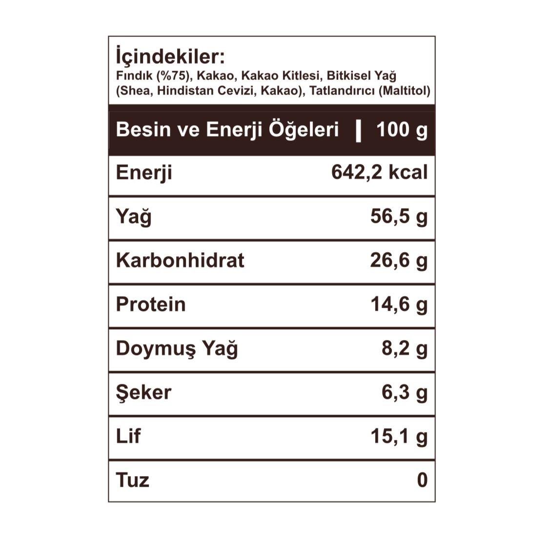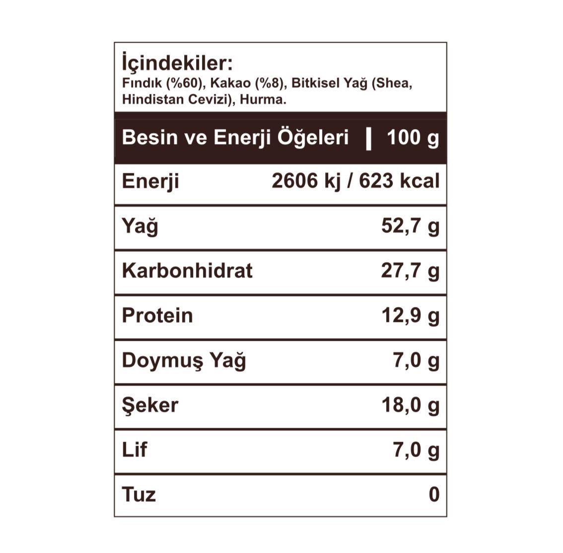 En kaliteli Giresun fındıklarıyla hazırlanmış, şeker ilavesiz ve katkısız içeriğiyle %100 doğal lezzet sizlerle! 🍫🌰