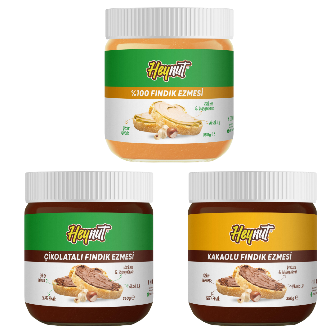 🥜 Çikolatalı Fındık Ezmesi (%75 fındık) 🥜 Kakaolu Fındık Ezmesi (%60 fındık) 🥜 %100 Fındık Ezmesi